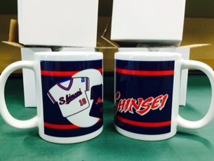 野球チームのマグカップのご依頼をいただきました。ユニフォームの写真からデザインをおこし、ご提案させていただきました。